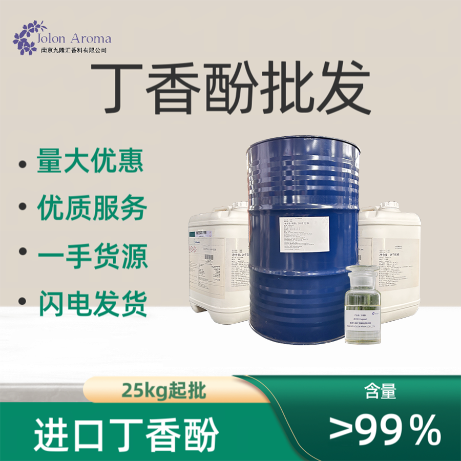 描述:丁香酚无色至淡黄色液体外观,具有丁香酚强烈的辛香味,含量>99%,用于配制日用香精···
